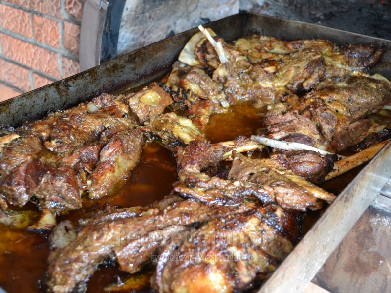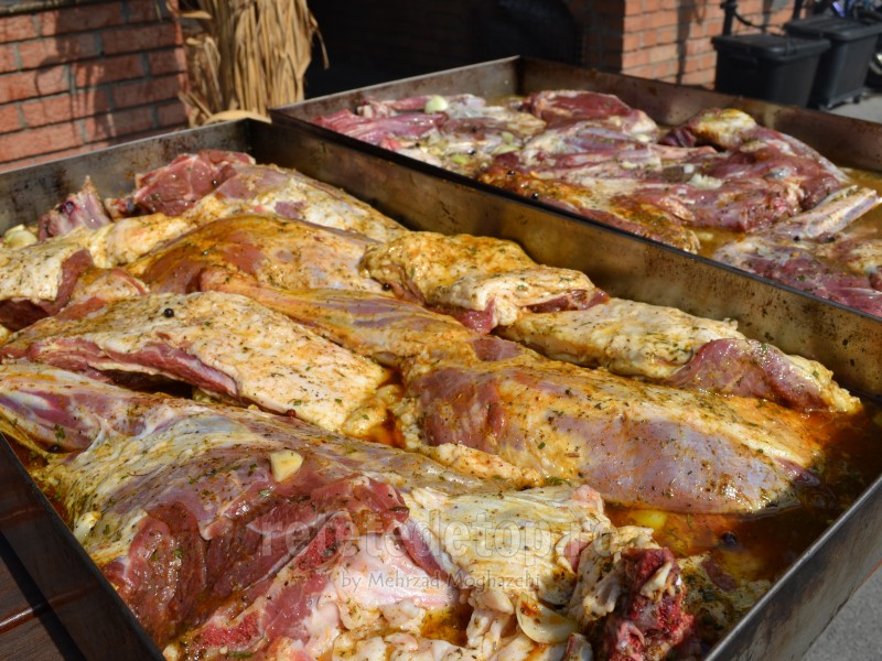 Deci ce aveam de pregatit? Trei berbeci, unul la protap si ceilalti in cuptorul cu lemne. Pe doi dintre cei 3 i-am transat in mai multe bucati dupa ce le-am scos organele… pentru ca am zis sa le fac si o surpriza si sa le pregatesc o specialitate iraniana din organe si carne, m-am gandit la muschiuletul berbecilor, cea mai frageda parte a animalului.