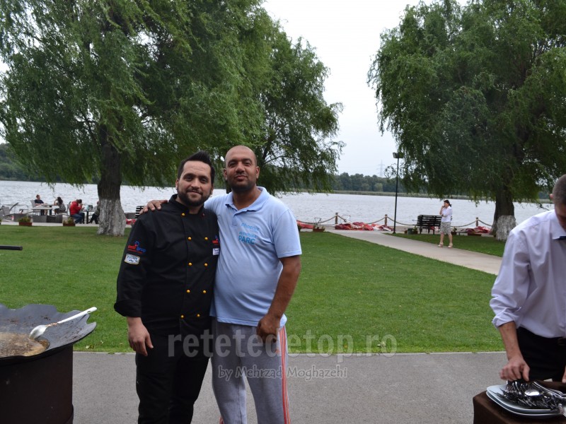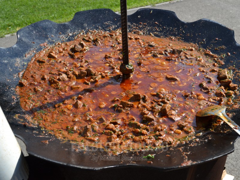 Preparatul pe care l-am pregatit din organe si carne, este un preparat traditional iranian numit “Jaghul Paghul”… organe tocate cuburi mici de circa 1 cm, multa ceapa, usturoi, patrunjel verde si condimente… Foarte importanta este ordinea… uleiul incins pe disc sau in ceaun, ceapa taiata julien, imediat dupa carnea si inima, dupa ce s-au facut pe jumate adaugam rinichii si dupa cateva minute si ficatii, usturoiul, condimentele, sarea si la sfarsit cand e gata adaugam patrunjelul… Trebuie sa spun ca am servit 300 de persoane la acel eveniment si Jaghul Paghulul s-a terminat imediat… a cam fost bataie pe el. J