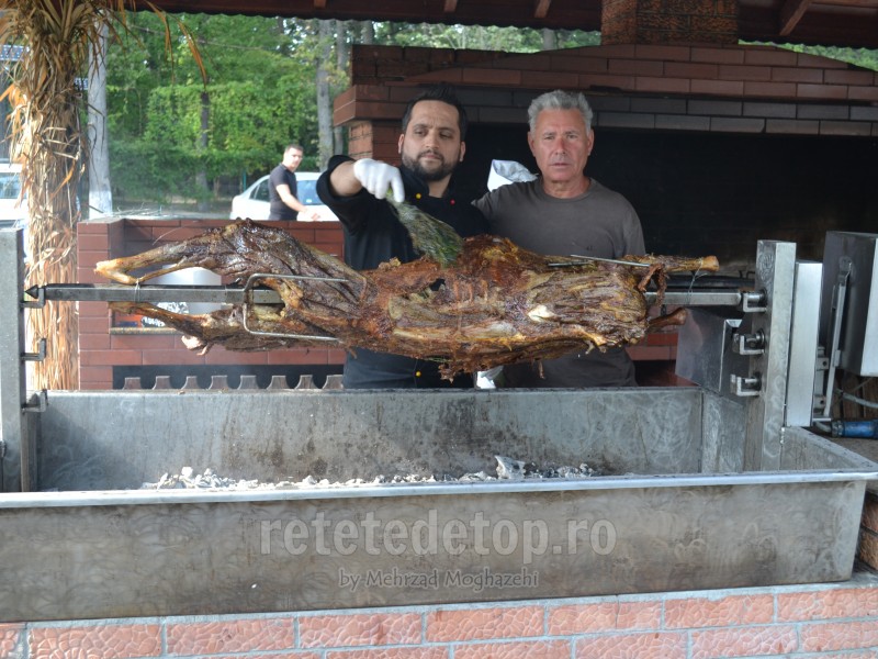 Dupa 6 ore de stat in cuptorul care a fost incins dis de dimineata, am scos tavile cu cei 2 berbeci… pur si simplu carnea cadea de pe oase, un miros si gust senzational, la fel si protapul. Noi, adica eu si ajutoarele mele de nadejde (Nea Petre zis Mister si Manole din Cernica, doi oameni minunati) am primit laude si multumiri… lucru care ma bucura de fiecare data cand pregatesc un preparat si cei care il gusta se bucura si tin sa imi multumeasca fata in fata.